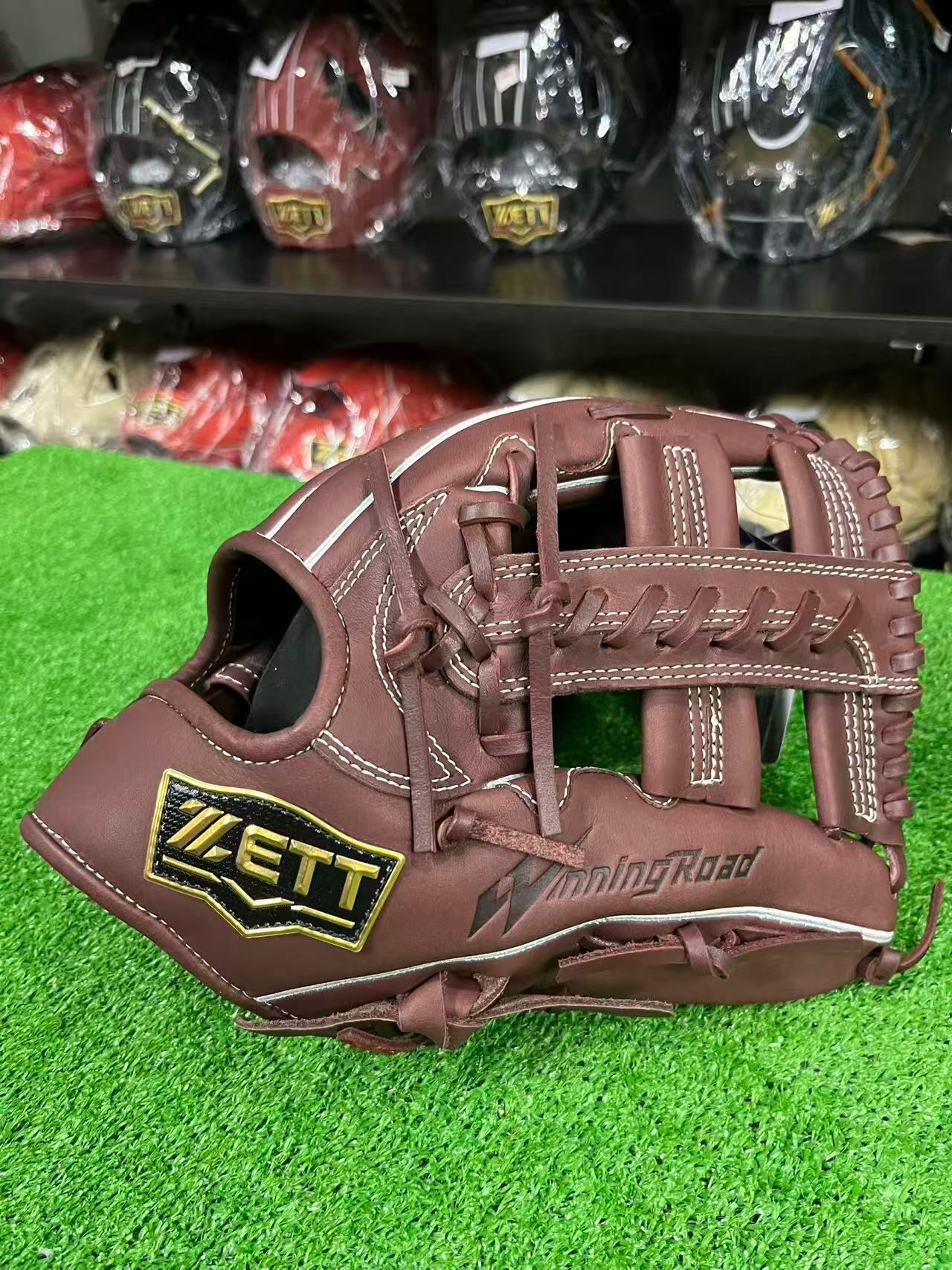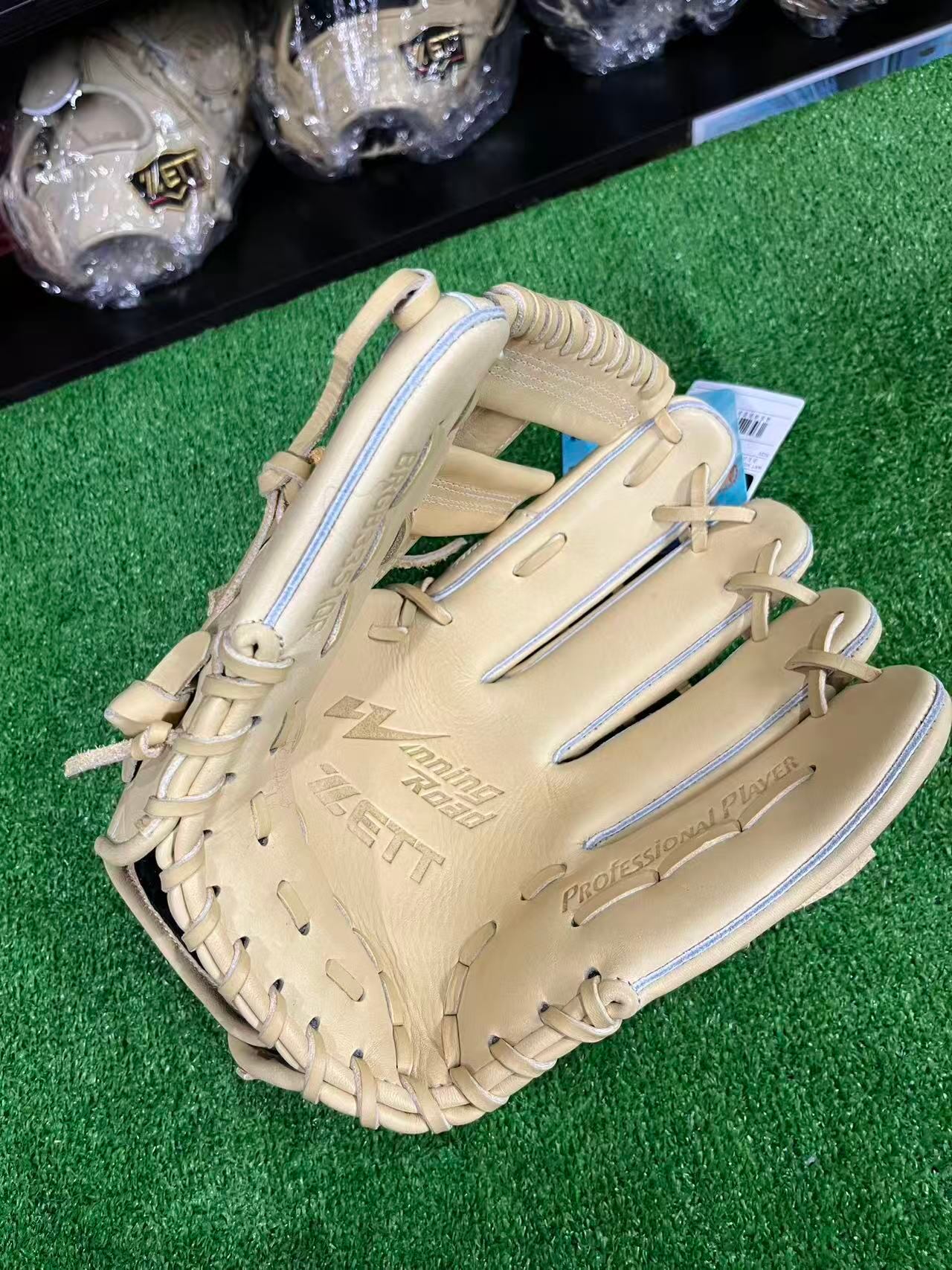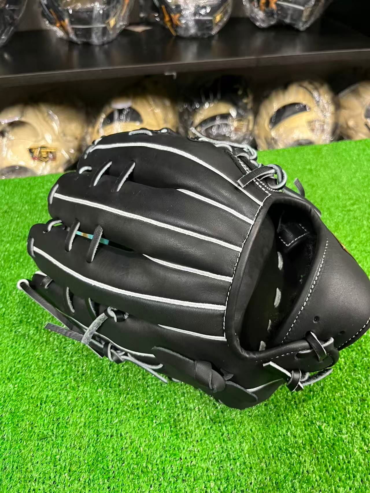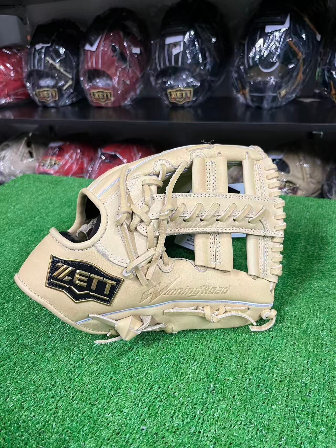 M号ボールに負けない、捕球ミスを軽減させるボックス型・手口逆巻・親指芯4層構造。背面紐通しとウェッブ部の紐穴補強も施した高耐久仕様。高級感あるウェルダーワッペンを親指付け根部に配した本格派仕様。